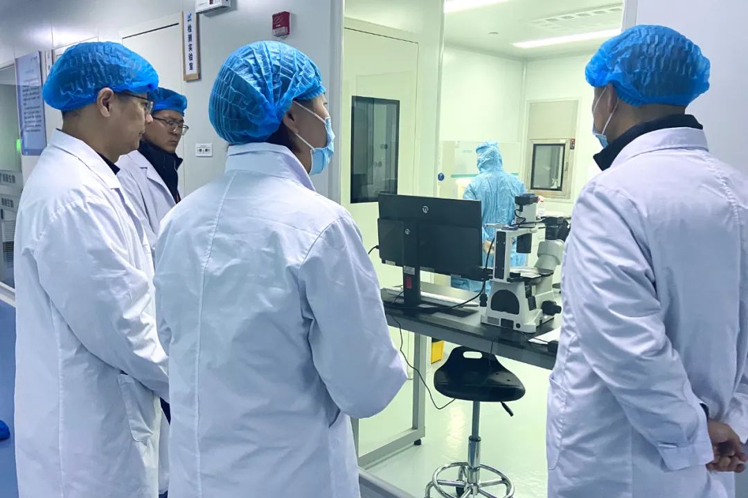 俞书记一行首先深入干细胞高标准GMP研发实验室实地考察,全面了解了领蔚生物的干细胞产业基础建设,并重点考察了干细胞生产制备技术、科研实力等具体情况。