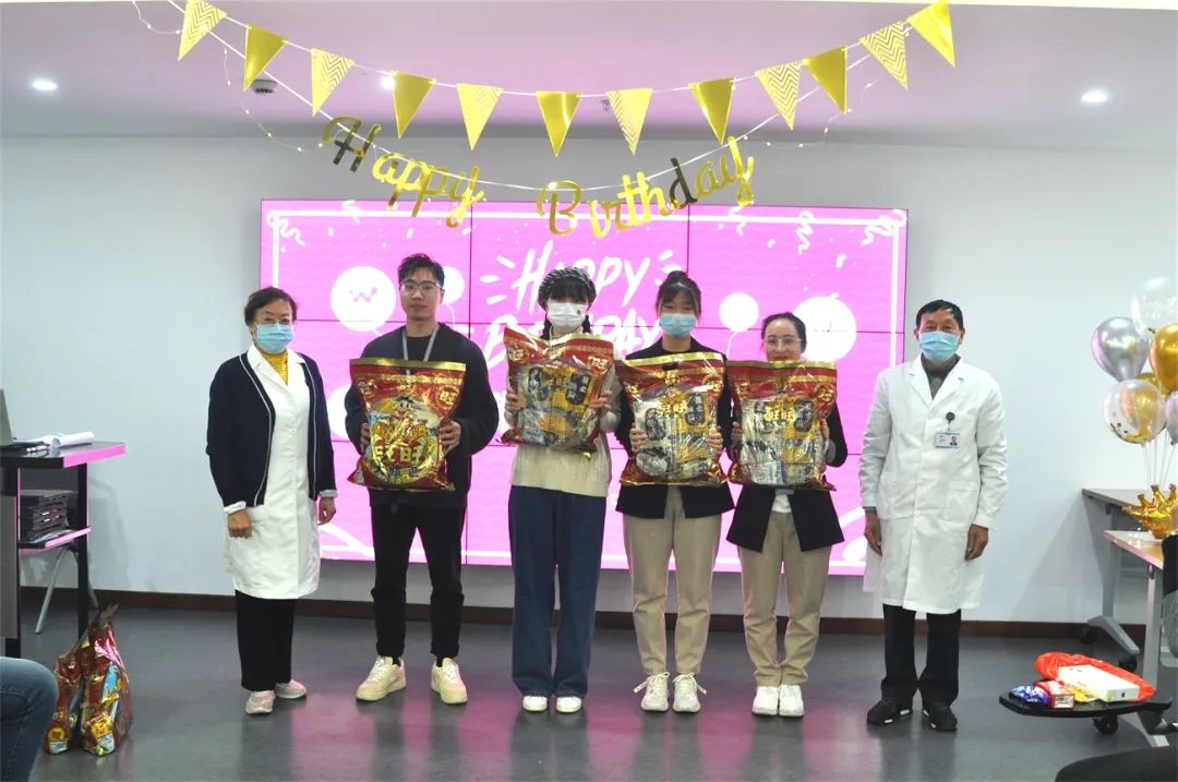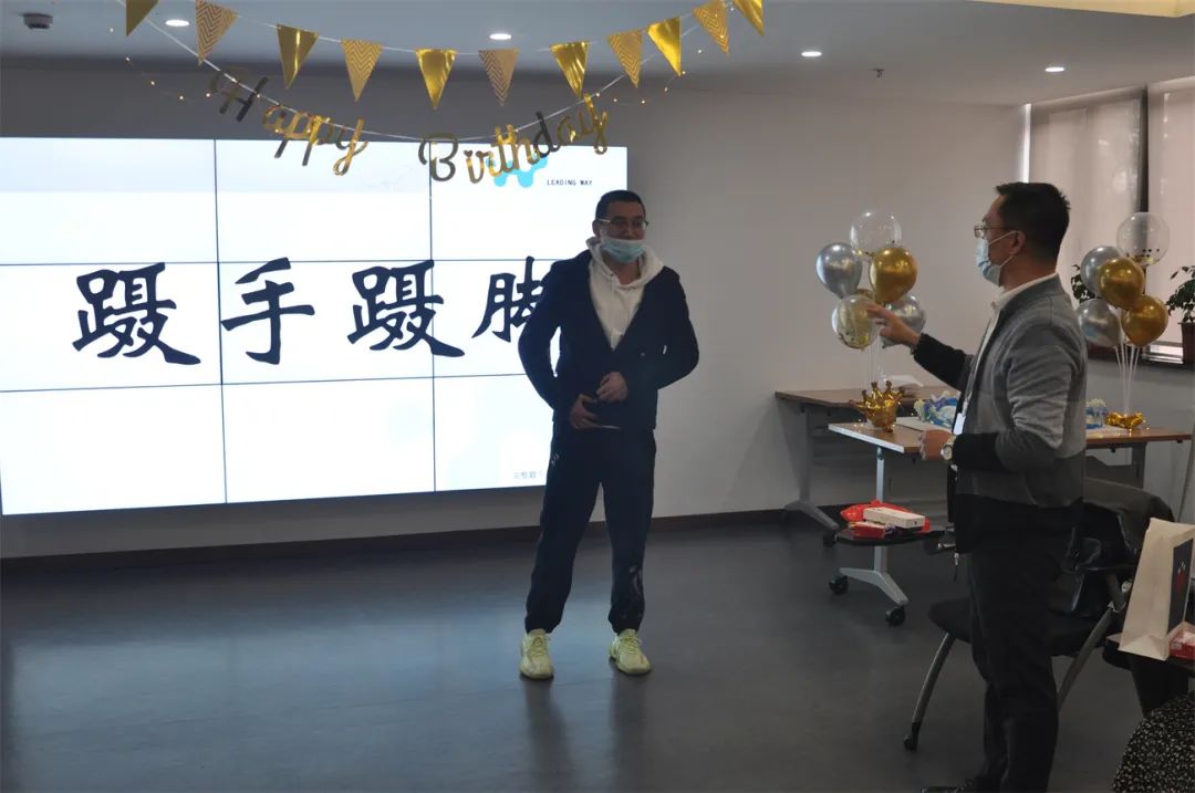 员工集体生日会 - Happy Birthday - 为提升员工对企业的归属感、认同感,营造温馨团结的工作氛围,近日,领蔚生物组织举办了“员工集体生日”活动,现场气氛热烈,场面逗趣非凡,深受员工喜爱。 下午两点刚过,进入精心布置的会场,映入眼帘的是整齐摆放的座椅,椅面上悉心放置了各类零食、饮品,寿星们纷纷入座,满满的仪式感一下子被渲染起来。 - 领蔚生物 - 活动伊始,领蔚生物总经理陈啸罕先生为此次集体生日活动致辞讲话。他表示,生日是员工们一年之中最特殊的日子之一,希望能借此活动,为每一位“领蔚生物”人送去一份别样的温暖,也祝愿大家在今后的工作生活中能一帆风顺。 公司还组织了现场寿星们互赠礼物的温暖环节,员工们纷纷拿出事先准备的小礼物,为彼此送上了一份最真挚的生日祝福。 莫非这就是传说中的Iphone13?→ Happy Birthday! 哈哈,小伙伴们, 猜猜他们都互赠了啥? Happy Birthday! 集体活动,怎么能少了游戏环节。面对经典考验默契游戏“我猜你比划”,寿星们纷纷放下“偶像包袱”,开始“各显神通”! 经过激烈的角逐,默契前三甲产生!公司送上了“年度惊喜大礼”——旺旺大礼包~ 生日会现场,熙雍医院院长俞来云、主任医师张建平共同为寿星们切下生日蛋糕。 简单而又温馨的庆生活动,让员工们再次感受到了领蔚生物这个大家庭的团结、幸福与快乐。 - 领蔚生物 - 生日会在寿星们的温情笑语中落下帷幕。初心如磐,使命在肩,向前走的每一步,都是努力的背负。领蔚生物每一位同仁,都在用感恩的姿态前行,祝愿我们共同进步、开拓创新,以全新的面貌和姿态,迎接未来新篇章。 编辑搜图